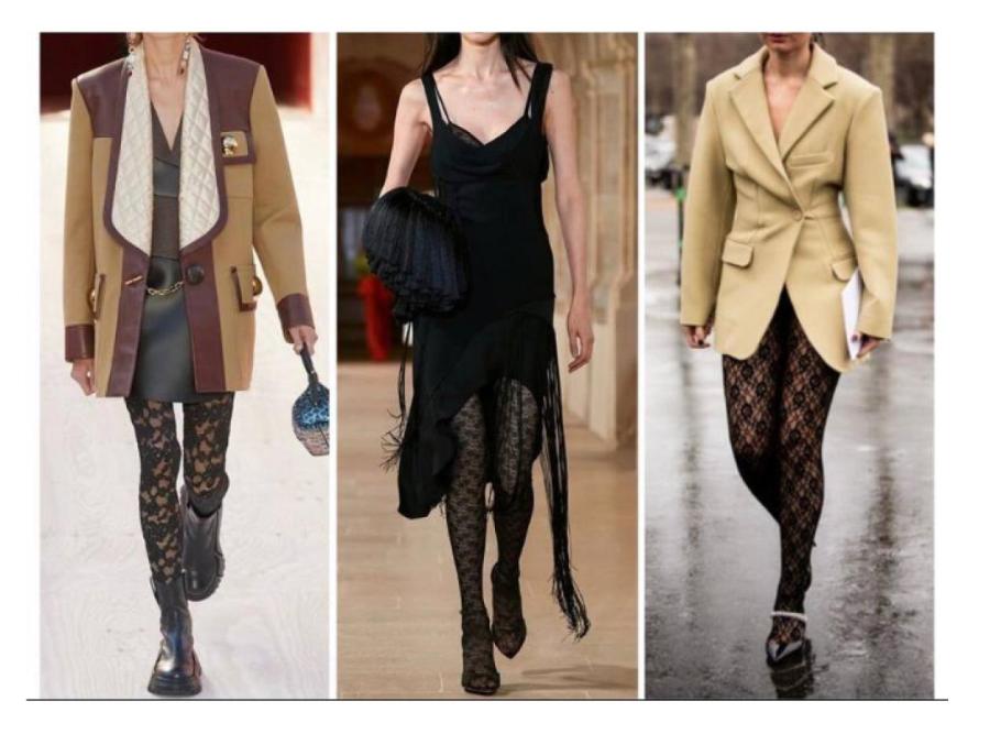 Fashion-колготки. Разбавить свой аутфит можно не только яркими элементами или аксессуарами, но и разнообразием принтов на колготах. Лучшим вариантом станет, если это будет кружево или большая сетка.