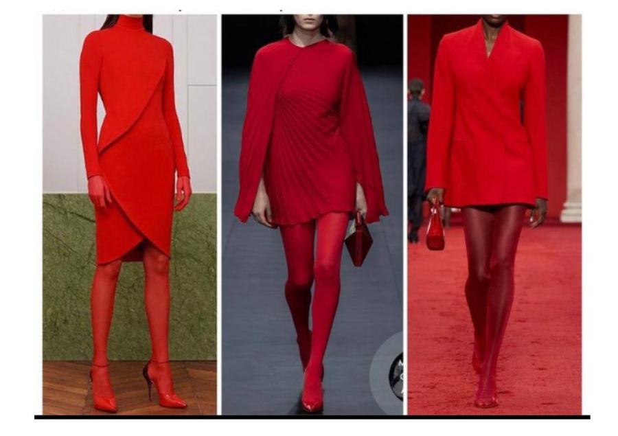 Тотальная страсть. Прозрачность и плотность красных колготок может быть абсолютно любой. Особенно красиво они смотрятся в монохронных красных аутфитах.