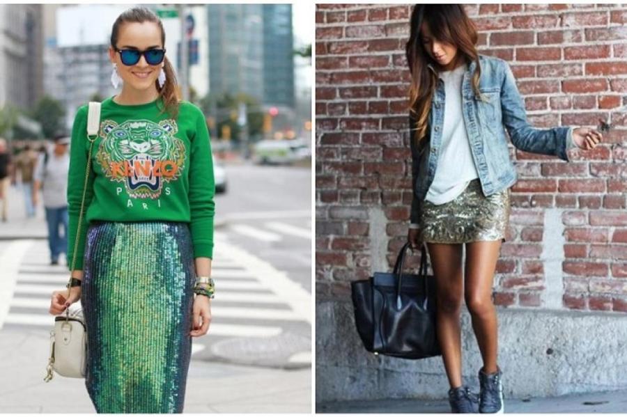 Чтобы пайетки выглядели уместно в офисе или на городской прогулке, следите за кроем и оттенком. Мини-платье в пайетках пусть останется для вечера, а вот свободные брюки с рассыпью, топ или жакет в пастельной гамме отлично впишутся в дневной образ. Особенно хороши светлые и матовые варианты блесток.