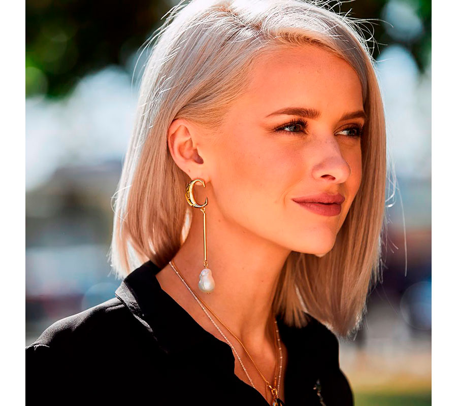 Для девушек с короткими волосами, особенно с каре, бобом, пикси или андеркатом, выбор сережек становится еще важнее. Лицо максимально открыто, и каждое украшение считывается моментально. Крупные украшения помогают добавить нужного объема, скорректировав линию скул и подбородка.